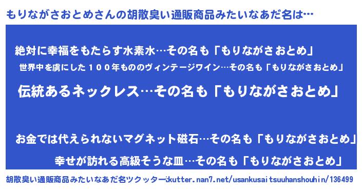 | 可愛いあだ名 | 『もっりぃー』『もりながさおとめママ』 |