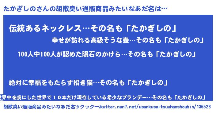 | ヘコむあだ名 | 『たかっちょ』『なまこ酢』 |