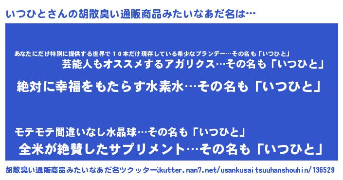 | 意味不明あだ名 | 『永久保存いつひと』『自称いつひと』 |