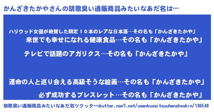 | 意味不明あだ名 | 『自称かんざきたかや』 |