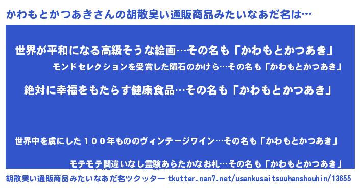 | 意味不明あだ名 | 『永久保存かわもとかつあき』 |
