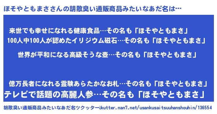 | 肩書あだ名 | 『ほそやともまさディレクター』 |