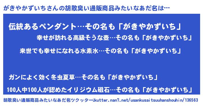 | ヘコむあだ名 | 『がきやかずいち(震え声)』『がきっぺ』 |