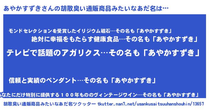 | ヘコむあだ名 | 『あやかすずき(笑)』『あやっ子』 |