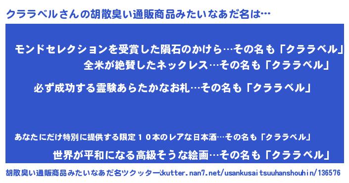 | 恥ずかしいあだ名 | 『プリティークララベル』『クラっちょ』 |