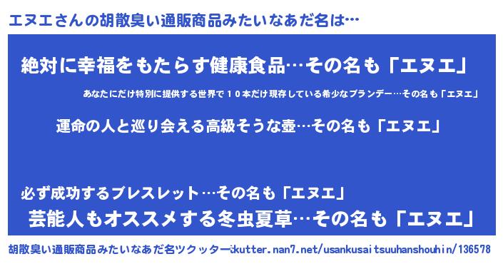 | ヒーロー風カッコイイあだ名 | 『ウルトラエヌエマン』『ネオエヌエ』 |