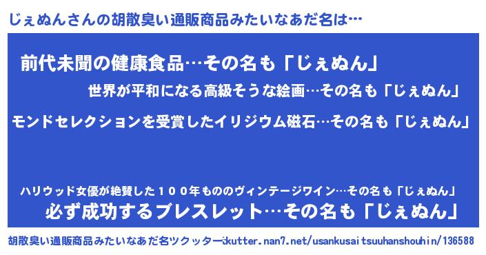 ヘコむあだ名 | 『じぇぬん(苦笑)』『じぇもー』 |