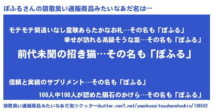 | ヘコむあだ名 | 『ぽふる(笑)』『ぽふっふぃ~』 |