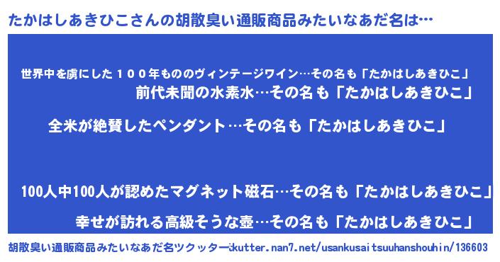 | 伝説のあだ名 | 『覚醒した遊び人たかはしあきひこ』 |