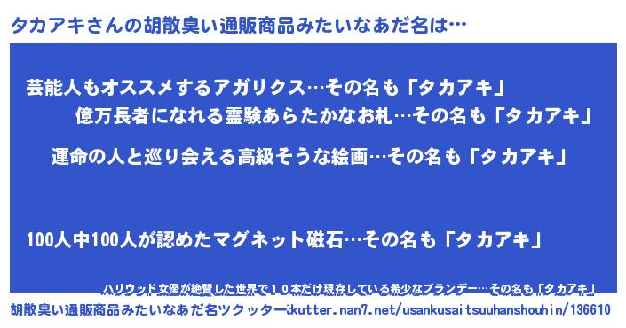 | 意味不明あだ名 | 『タカアキフォーエバー』『自称タカアキ』 |