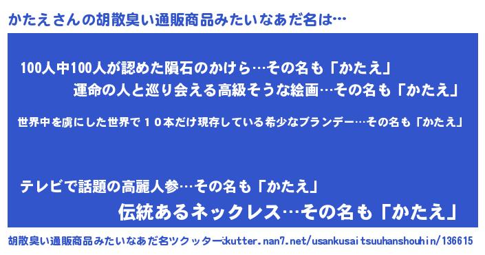 | 意味不明あだ名 | 『住所不定無職かたえ(85歳)』『自称かたえ』 |