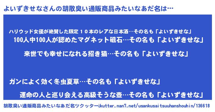 | 意味不明あだ名 | 『永久保存よいずきせな』 |