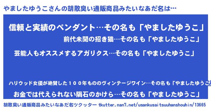 | 意味不明あだ名 | 『自称やましたゆうこ』 |