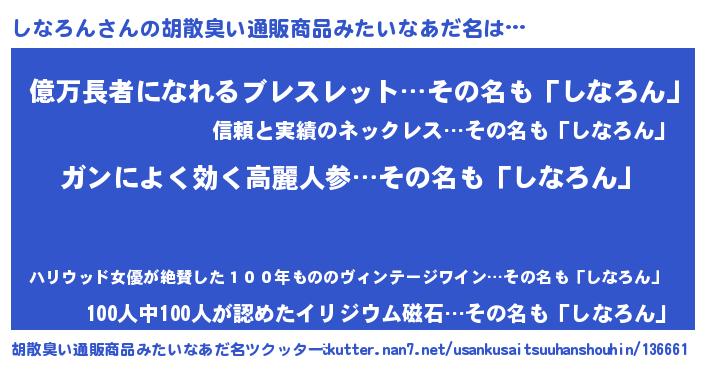 | 意味不明あだ名 | 『しいたけ科しなろん属』『自称しなろん』 |