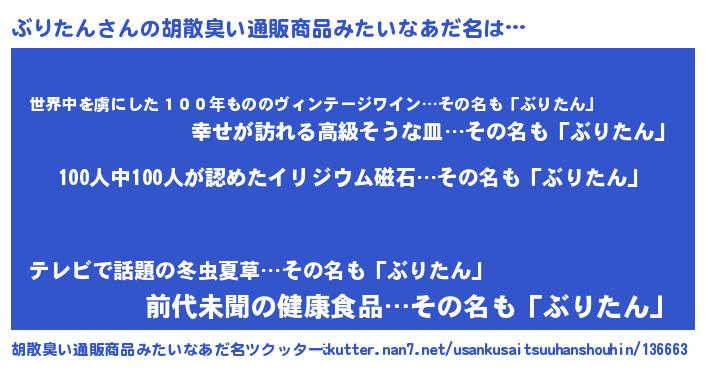 | ヘコむあだ名 | 『ぶりたん(苦笑)』『なまこ酢』 |