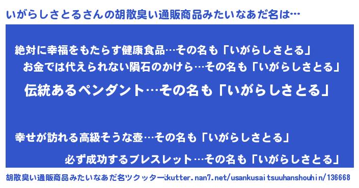 | ヘコむあだ名 | 『いがっちょ』『いがらしさとる(苦笑)』 |