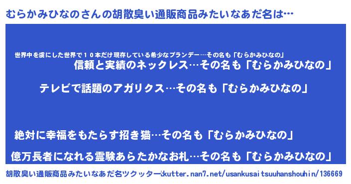 | 意味不明あだ名 | 『自称むらかみひなの』 |