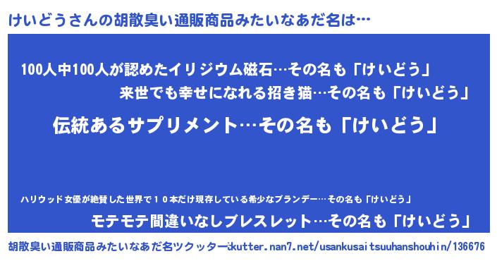 | ヒーロー風カッコイイあだ名 | 『魔戒騎士ケイ』『愛の使者けいどう』 |