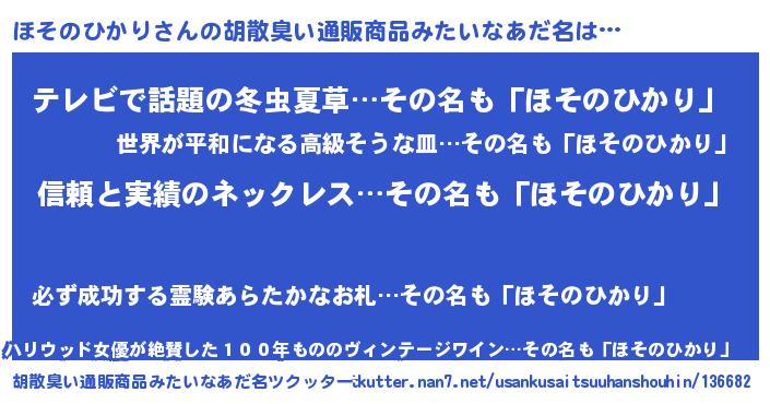 | 意味不明あだ名 | 『とにかく怪しいほそのひかり』 |