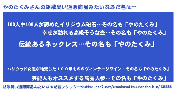 | 意味不明あだ名 | 『とにかく怪しいやのたくみ』 |
