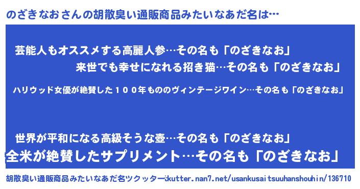 | ヘコむあだ名 | 『のざお』『のざきなお(小並感)』 |