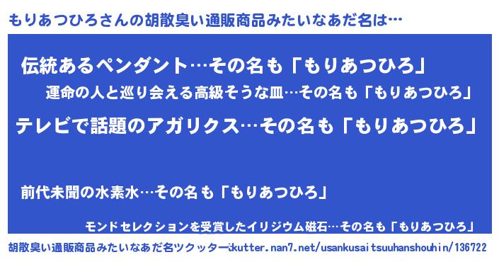 | 意味不明あだ名 | 『自称もりあつひろ』 |