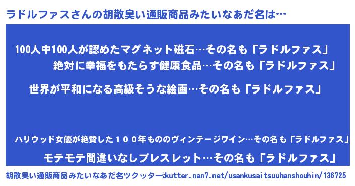 | ファンタジー風あだ名 | 『エターナルラドルファスー』 |