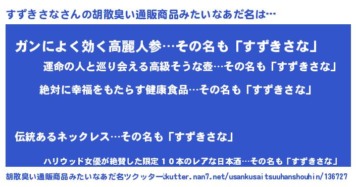 | ヒーロー風カッコイイあだ名 | 『ネオスズキサナ』『仮面スズダー』 |
