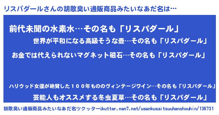 | ヘコむあだ名 | 『リスパダール(笑)』『酢こんぶ』 |