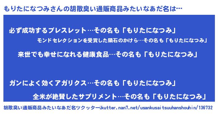 | 意味不明あだ名 | 『永久保存もりたになつみ』 |