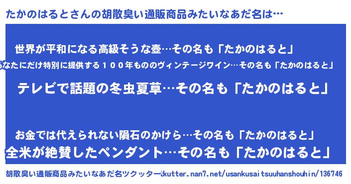 | 意味不明あだ名 | 『自称たかのはると』 |