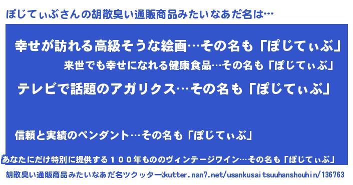 | 意味不明あだ名 | 『自称ぽじてぃぶ』『永久保存ぽじてぃぶ』 |