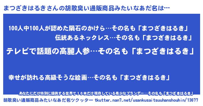 | 意味不明あだ名 | 『自称まつざきはるき』 |