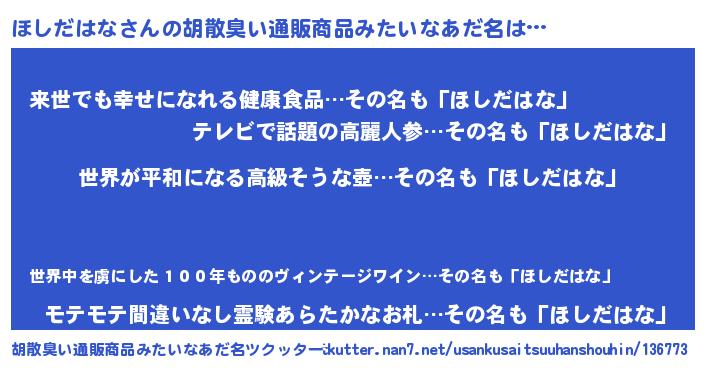 | ファンタジー風あだ名 | 『エターナルホシダハナー』『ホシフェル』 |