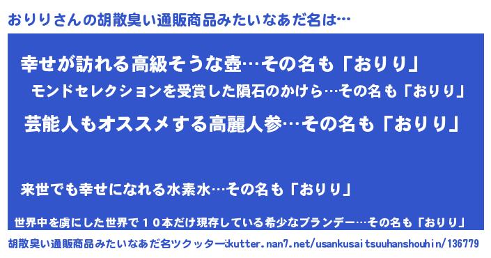 | 意味不明あだ名 | 『自称おりり』『おりりフォーエバー』 |