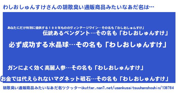 | ヒーロー風カッコイイあだ名 | 『スーパーワシオシュンスケ』 |