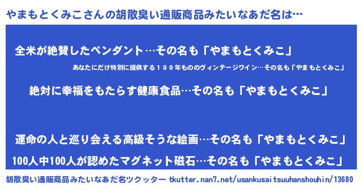 | 意味不明あだ名 | 『永久保存やまもとくみこ』 |