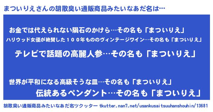 | 意味不明あだ名 | 『自称まついりえ』 |
