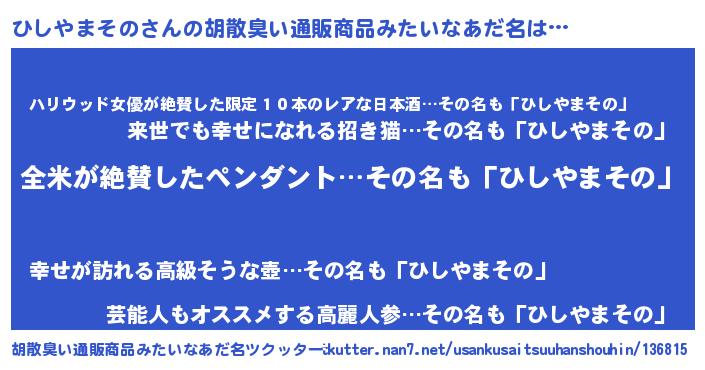 | 意味不明あだ名 | 『とにかく怪しいひしやまその』 |