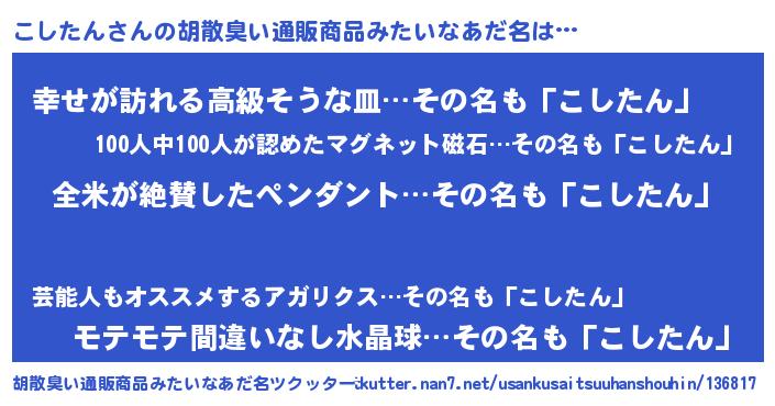 | 意味不明あだ名 | 『とにかく怪しいこしたん』 |