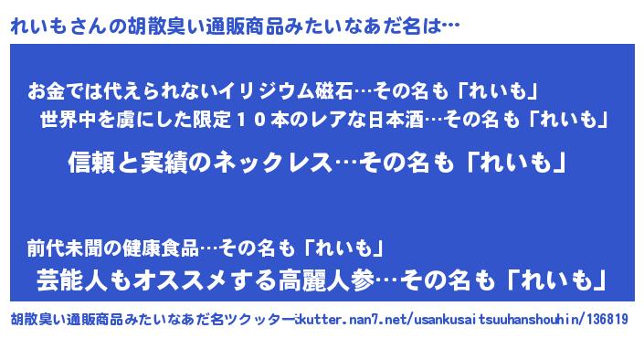 | 意味不明あだ名 | 『とにかく怪しいれいも』『自称れいも』 |