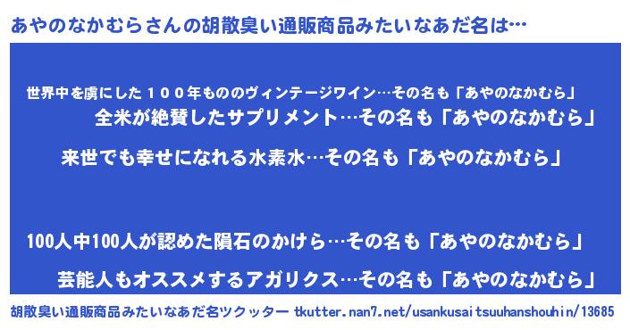 | 意味不明あだ名 | 『永久保存あやのなかむら』 |