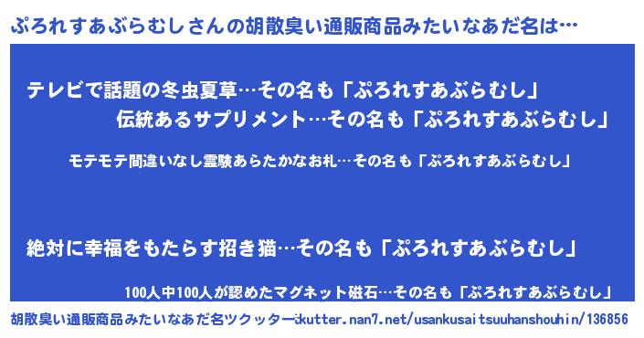 | 自動車の名前っぽいあだ名 | 『プリプロ』『レクプス』『フィップ』 |