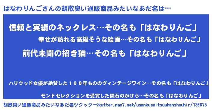 | 欧米人風あだ名 | 『アンジェラ・はなわりんご』 |