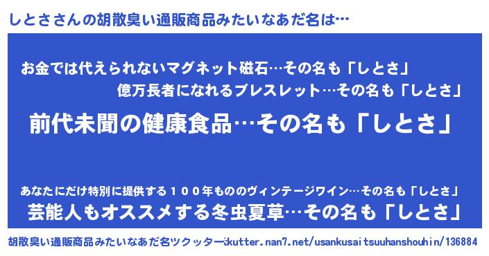 | ヒーロー風カッコイイあだ名 | 『ネオシトサ』『慈愛の使者しとさ』 |