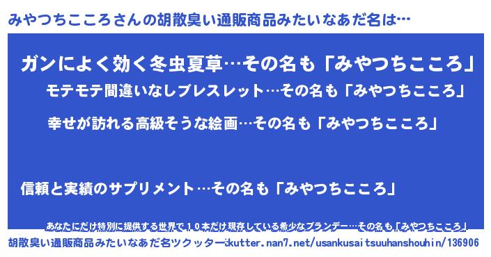 | 肩書あだ名 | 『みやつちこころ少佐』 |