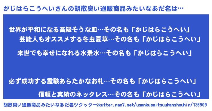 | 意味不明あだ名 | 『永久保存かじはらこうへい』 |