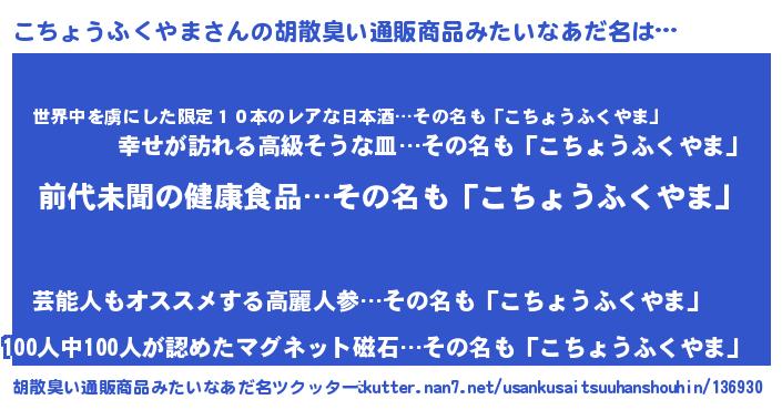 | ヘコむあだ名 | 『こちょうふくやま(笑)』『豆乳』 |