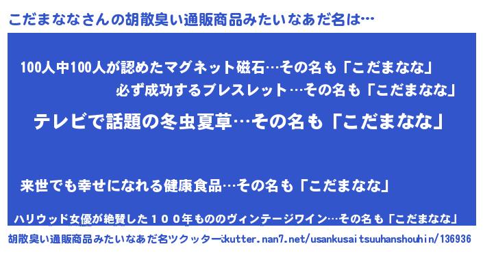 | 男性向けラノベタイトル風あだ名 | 『Re:こだまななから始める異世界生活』 |