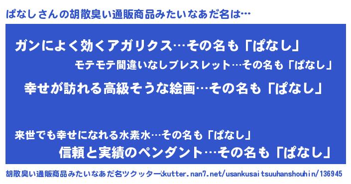 | 意味不明あだ名 | 『ぱなしフォーエバー』『自称ぱなし』 |